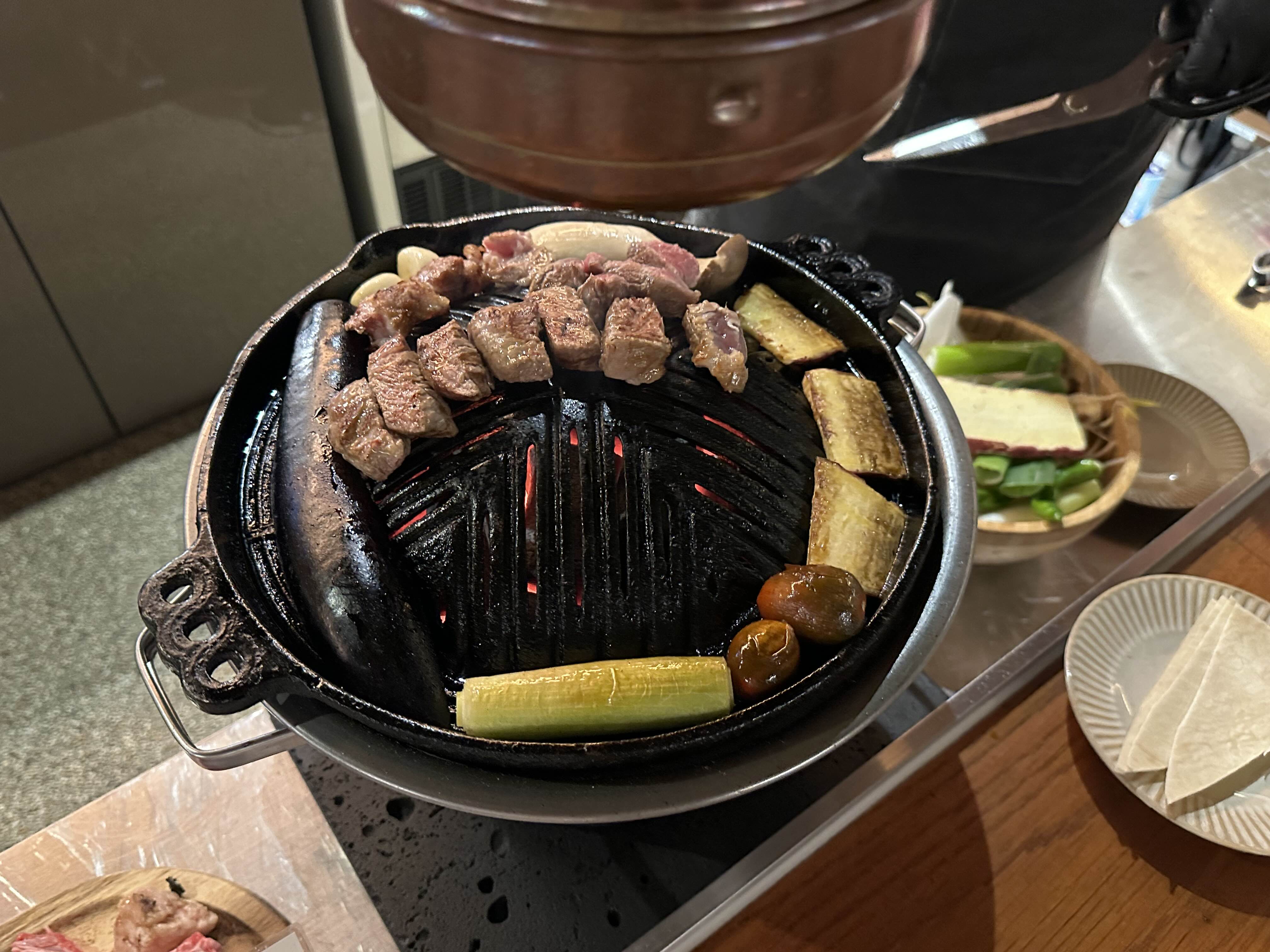 나란히 앉고 직원분이 안쪽에서 불판에 직접 구워주십니다