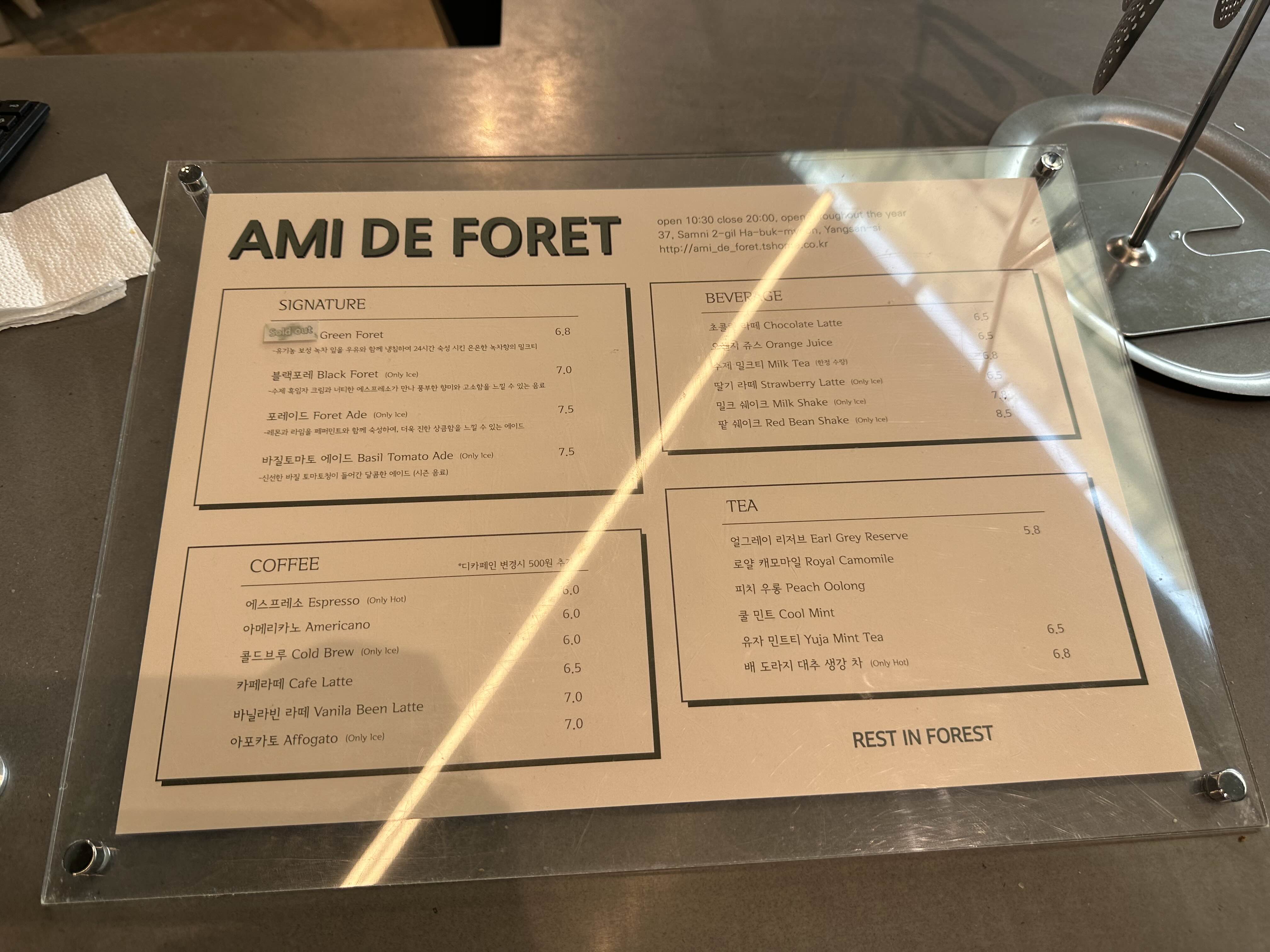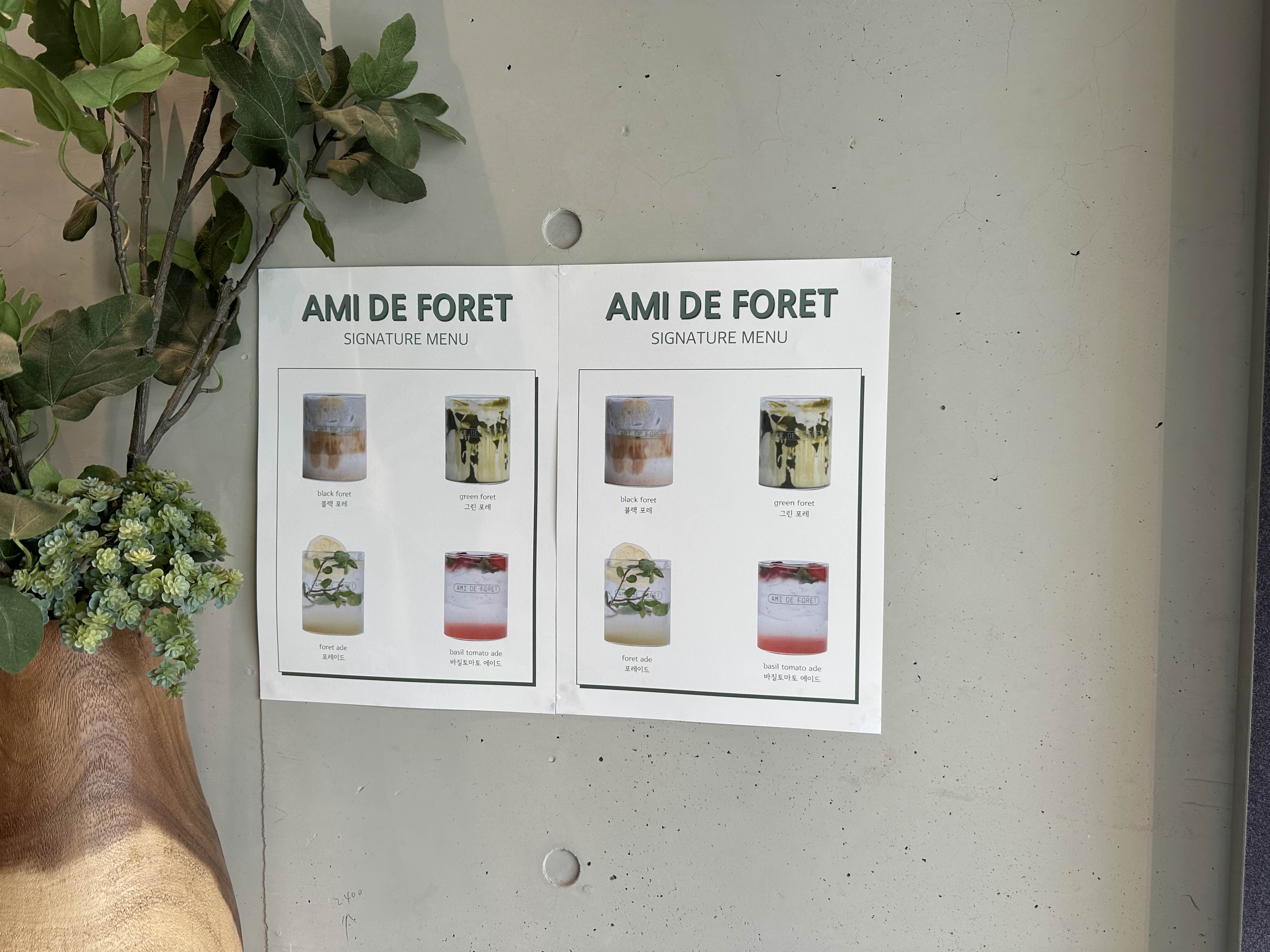 아미드포레 메뉴입니다
